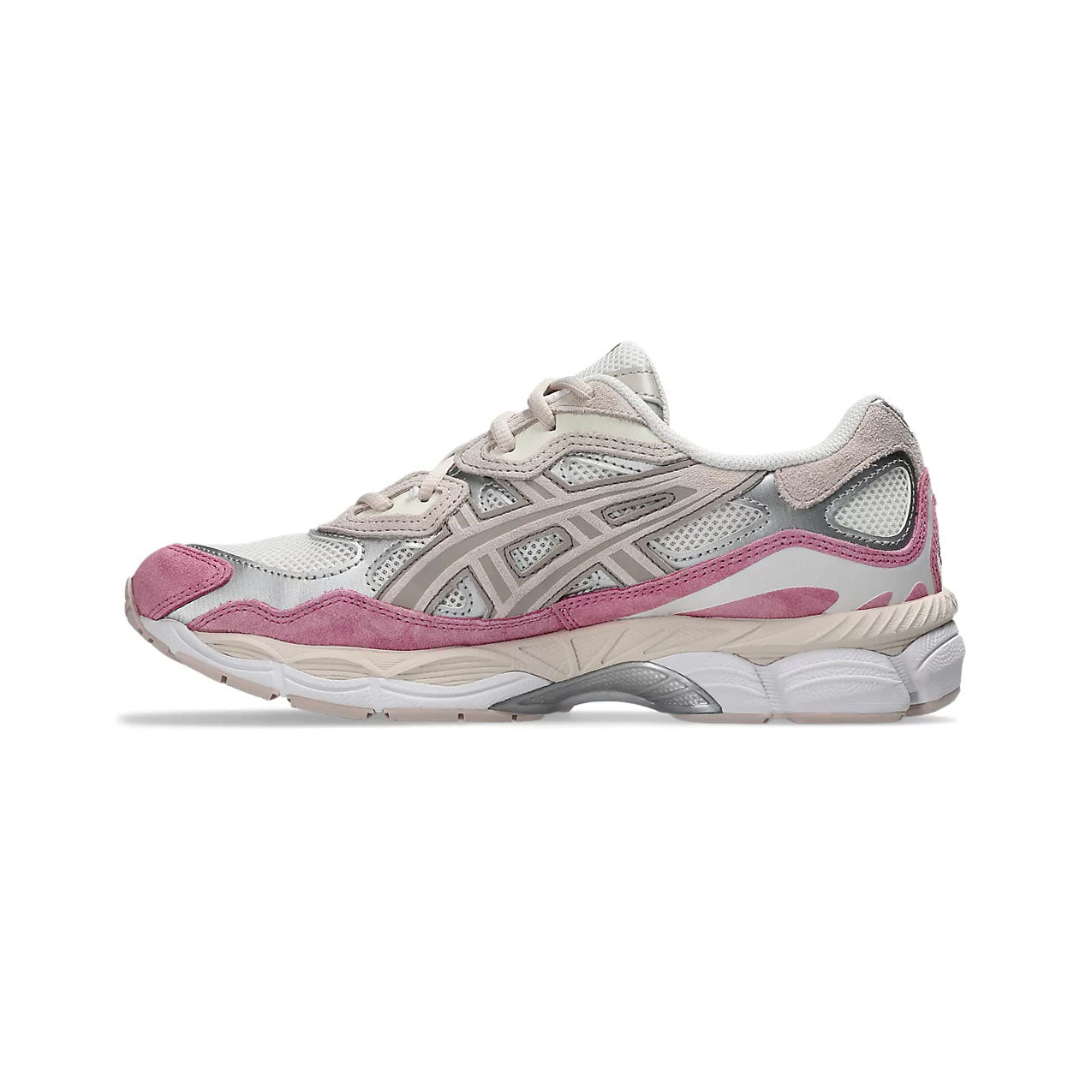 The GEL-NYC sneaker sources inspiration from heritage and modern performance running styles. Its upper construction references the GEL-NIMBUS 3 shoe from the early 2000s and blends it with various embellishments from the GEL-MC PLUS V design. The tooling contrasts the upper's retro influences by using the GEL-CUMULUS 16 shoe's tooling system. Through a combination of lightweight foams and GEL technology inserts, this midsole formation helps create advanced underfoot comfort.