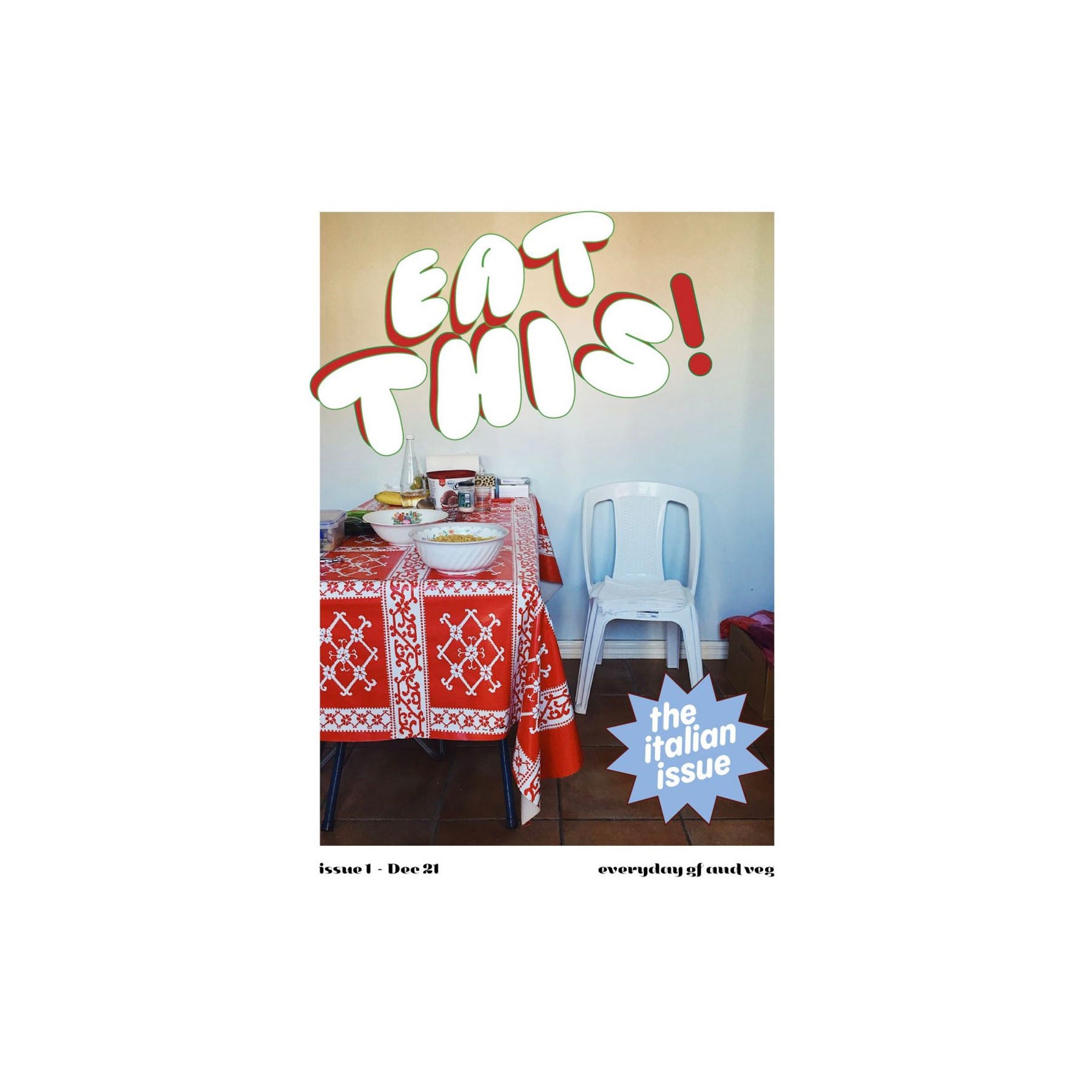 Eat THIS! is self-published zine series created by food writer/author Jade O'Donahoo. Each issue has a cultural theme and features a collection of recipes, as well as family stories and traditions of that culture. All recipes are meat-free and have gluten free options, as this reflects the way Jade cooks and eats at home. The purpose of the zine is not only to highlight the traditional vegetarian meals from all cultures, but also to unite people through parallels between different cultures. Eat THIS! is intended to make cooking and food culture easy, accessible, and appealing to all!The first issue is Italian and feels particularly special as it reflects Jade's own cultural heritage. More than 35 recipes, many collected from Jade's own nonna, are presented across four chapters (Everyday Eating, Sundays and Celebrations, Sweets, and Cheers!), with handy tips, food traditions and family stories woven throughout. Jade hope this zine will inspire readers to look at their own family's customs, and keep these precious traditions alive.