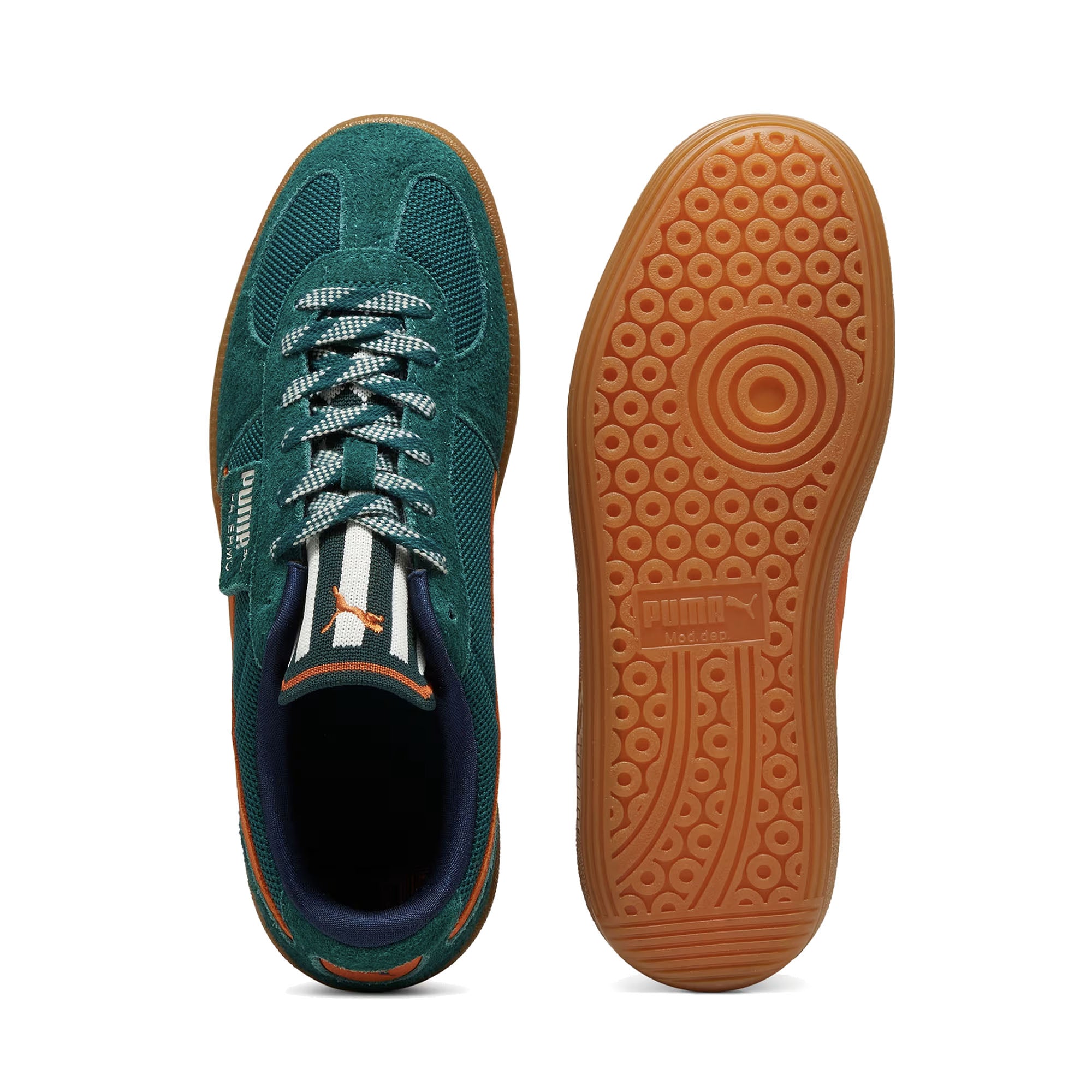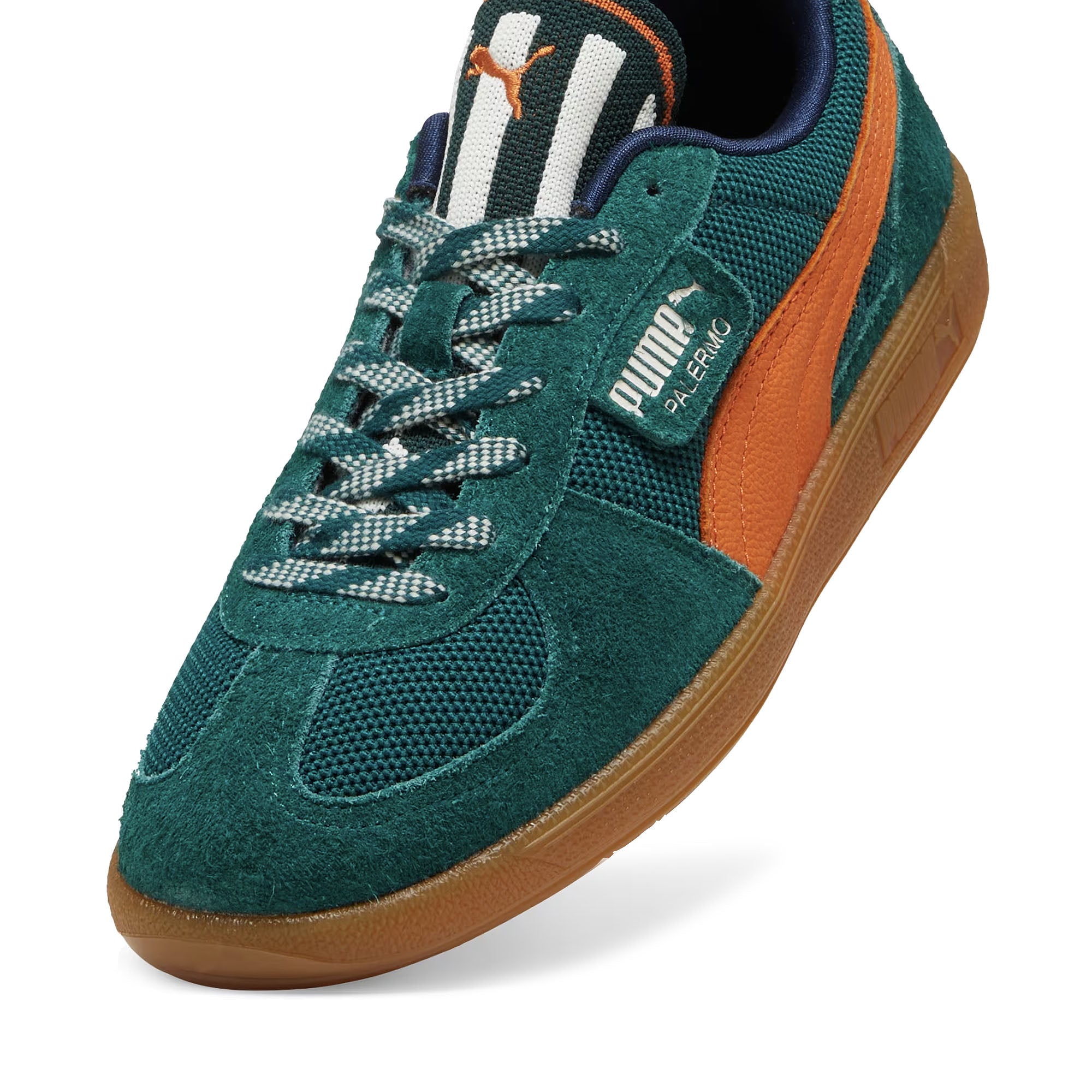 Straight from the archives, it's the Puma Palermo. This classic terrace shoe debuted in the 80's and now, it's been brought back for the fans. With its signature T-toe construction and classic gum sole, this Supertifo version features a textile upper, hairy suede overlays, speckled laces, and a bold tongue design.