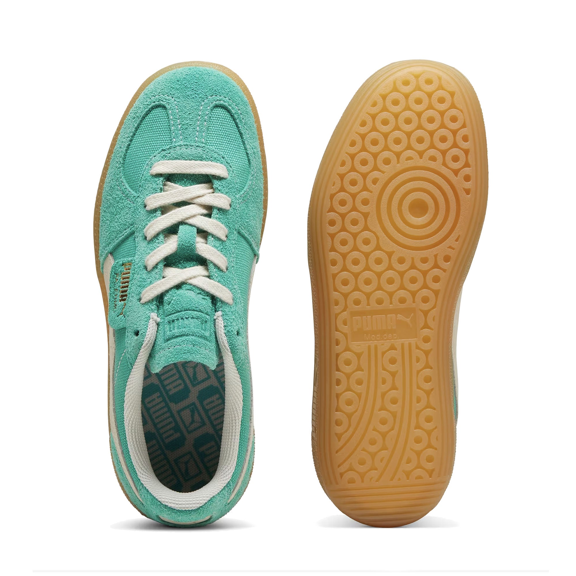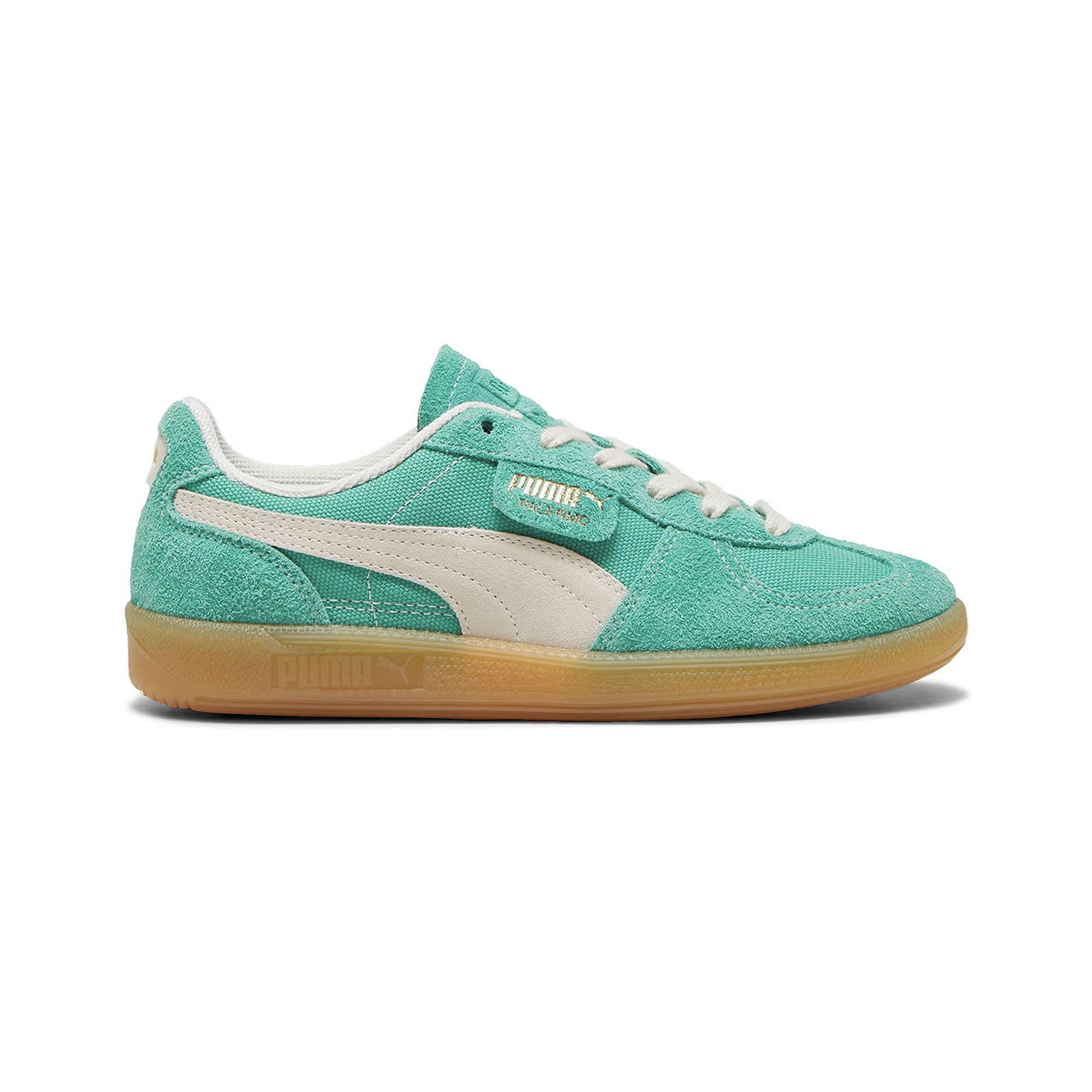 Straight from the archives, it's the Puma Palermo. This classic terrace shoe debuted in the 80's and now, it's been brought back for the fans. With its signature T-toe construction and classic gum sole, this version features a textile upper and suede overlays.