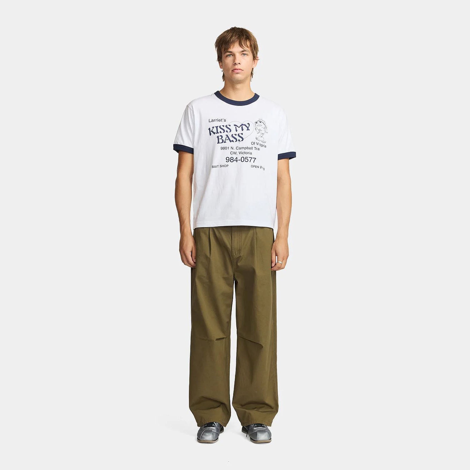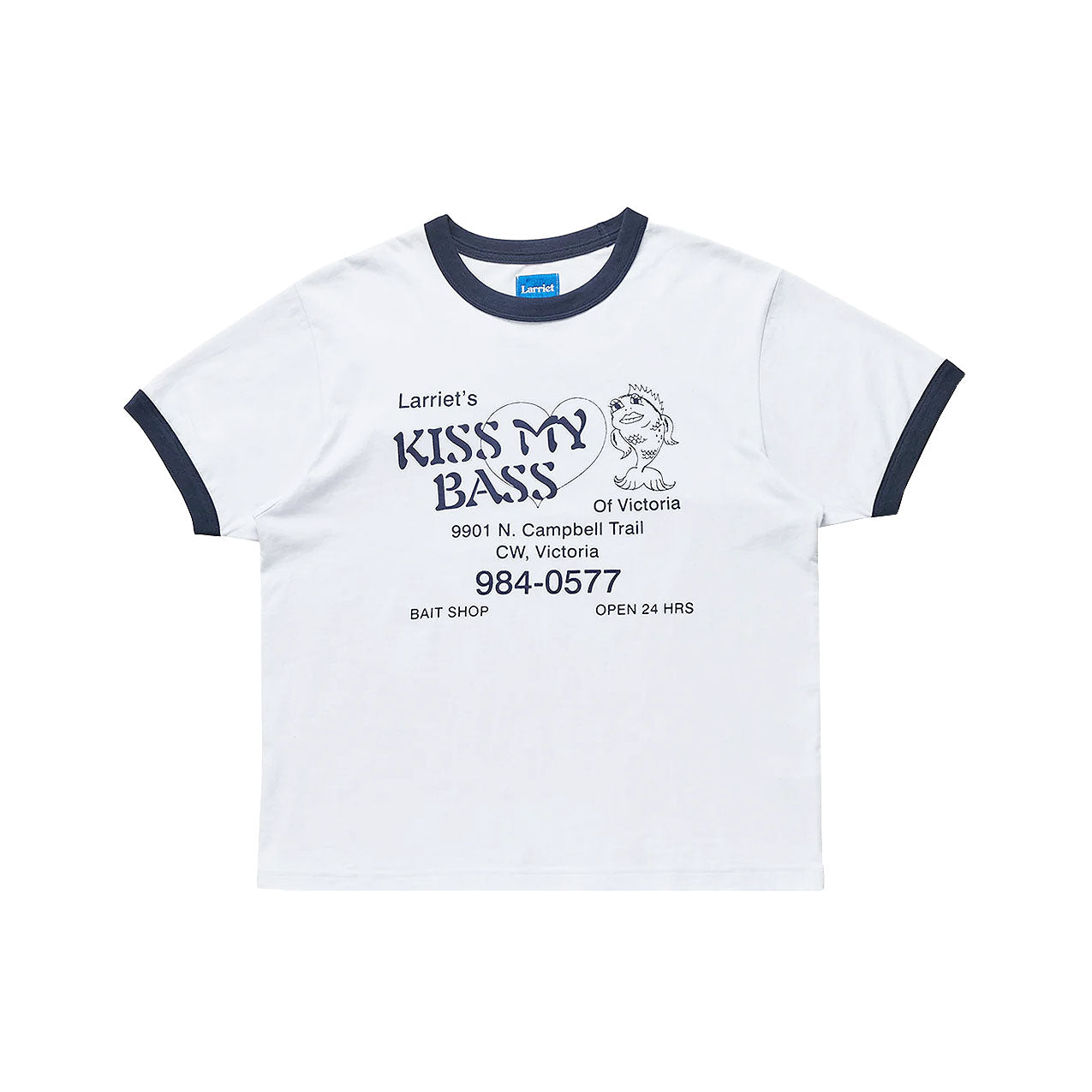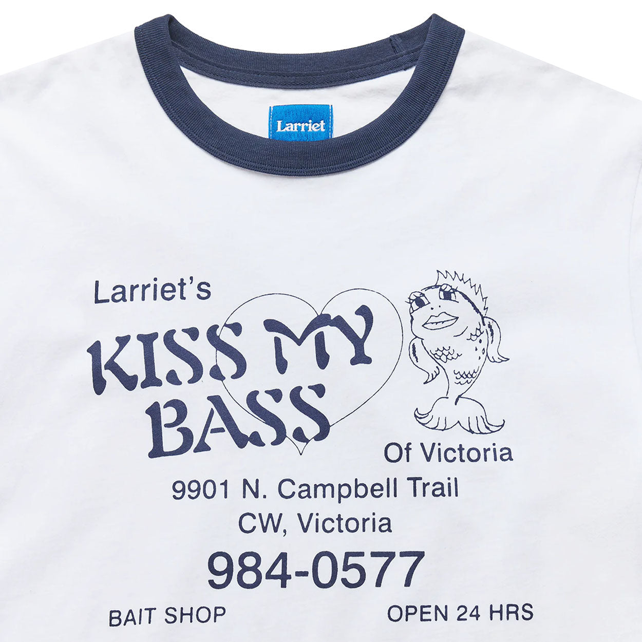 The Larriet Men's Bass T-Shirt is a take on the classic ringer tee, crafted from 100% cotton jersey with a chest print. This relaxed-fit t-shirt is built to last, made from lightweight jersey and pre-shrunk to maintain its shape. The design features contrast ribbed trims at the neck and sleeve hems, along with a twin-needle stitched body hem and shoulder-to-shoulder interior neck taping.